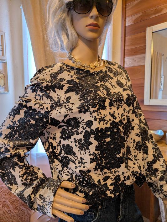 White Stag Velvet and Glitter Floral Top