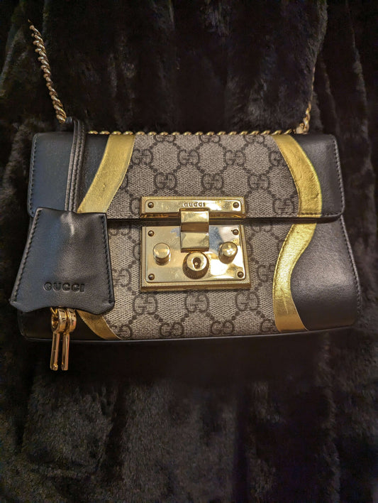 Gucci Padlock Bag GG Supreme Canvas and Black leather