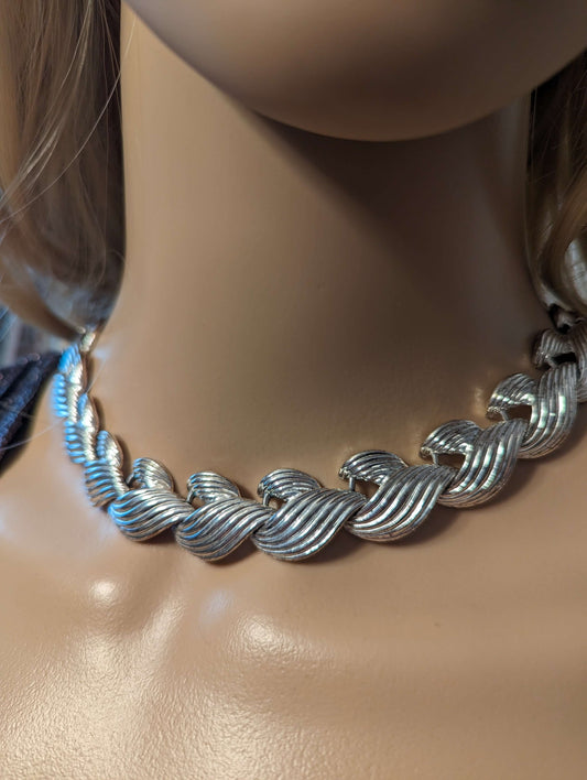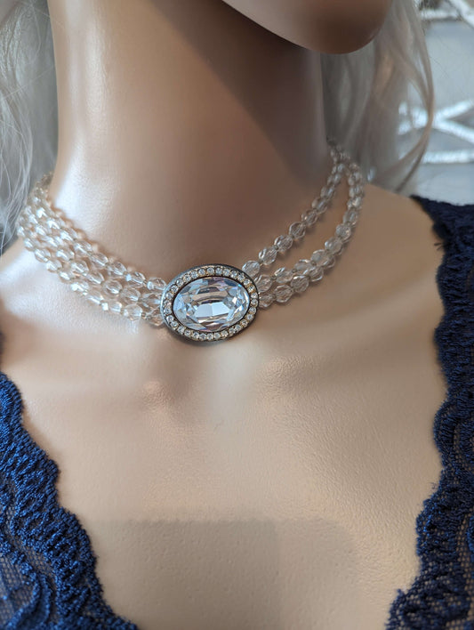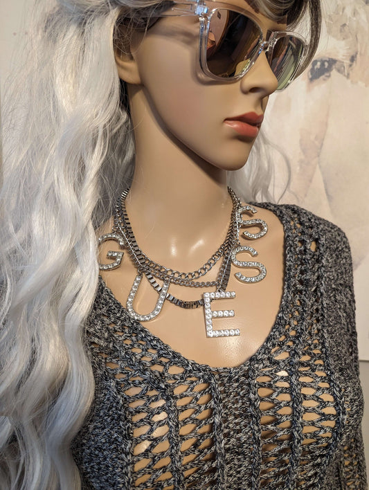 Guess vintage polished silver & crystal 3 chain oversized spell out statement necklace